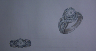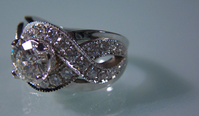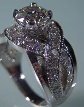 My client Nicole really knew what she wanted. I just followed her lead and with the help of renderings designed her 18k white gold ring with a 1.25 round center diamond and 60 accent diamonds. The total diamond weight is 2.55 carats.