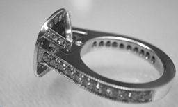 Hand fabricated 18k white gold ring with 1 carat princess cut center diamond and micro-pavé